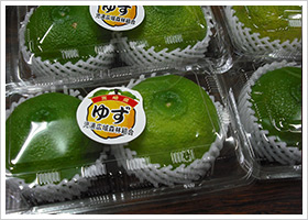 ゆず事業所にて集荷したゆずは、青果用と加工用に選別されます。青果用は事業所で選別・梱包され九州管内8箇所の青果市場へ、加工用は当組合加工所で処理を行い福岡県・大分県を中心に出荷しています。